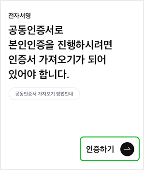 모바일 전자약정서(Mobile-Site) 공동인증서 인증화면 → ‘인증하기’ 클릭